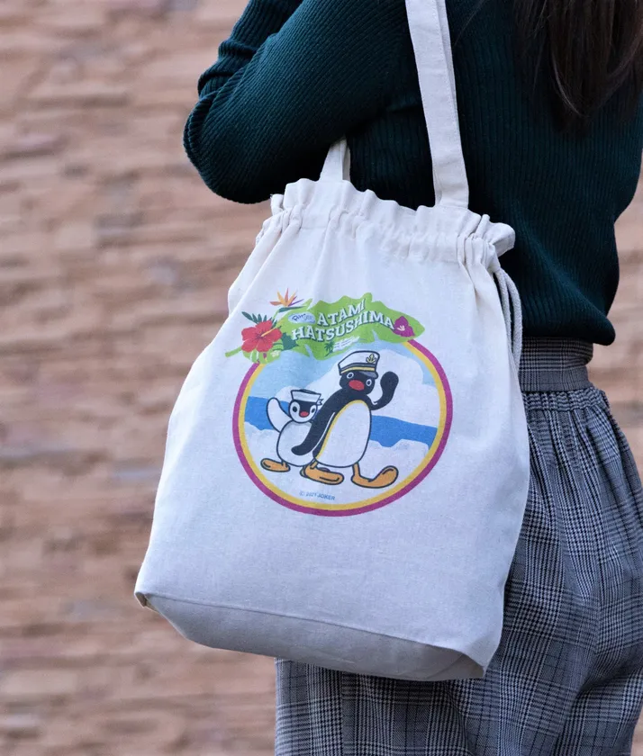 熱海港待合所と「熱海シーサイドスパ&リゾート」の1階売店に、今回のコラボ限定のオリジナルグッズも取り扱うピングーコーナーが登場いたします。オリジナルグッズは、巾着トートバッグ、ハードカバーミニノートといった普段使いにぴったりな商品とピングーとピンガの顔を千歳飴で表現した可愛さ満点の土産菓子「パパブブレ」をご用意しております。