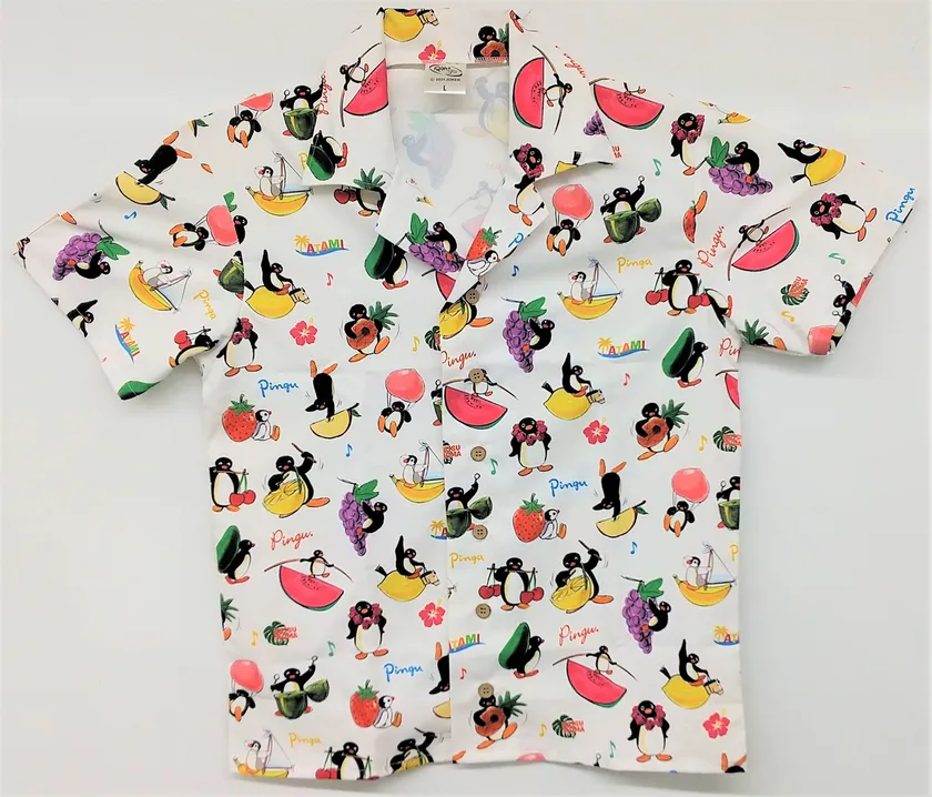 コラボルームにご宿泊の方に、女性に人気のフルーツ柄イラストが散りばめられたアロハシャツと寝顔のピングーとピンガが両面にプリントされたアイマスクをプレゼントいたします。どちらもここでしか手に入らない数量限定のプレミア品です。