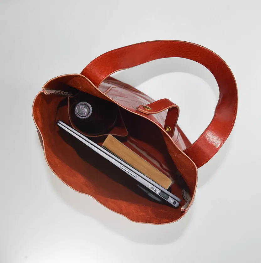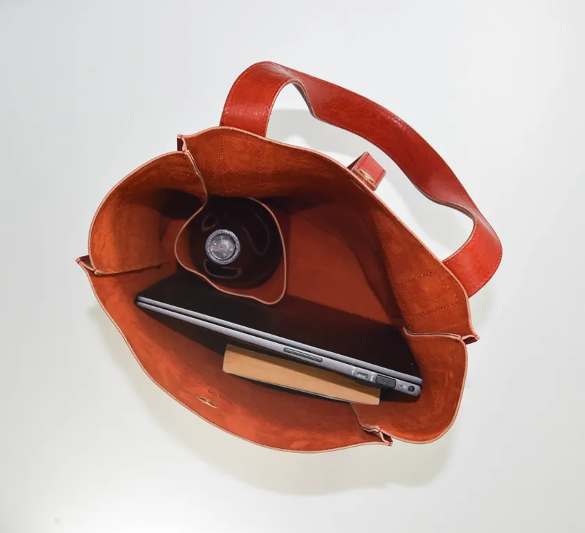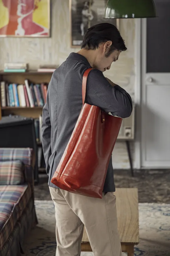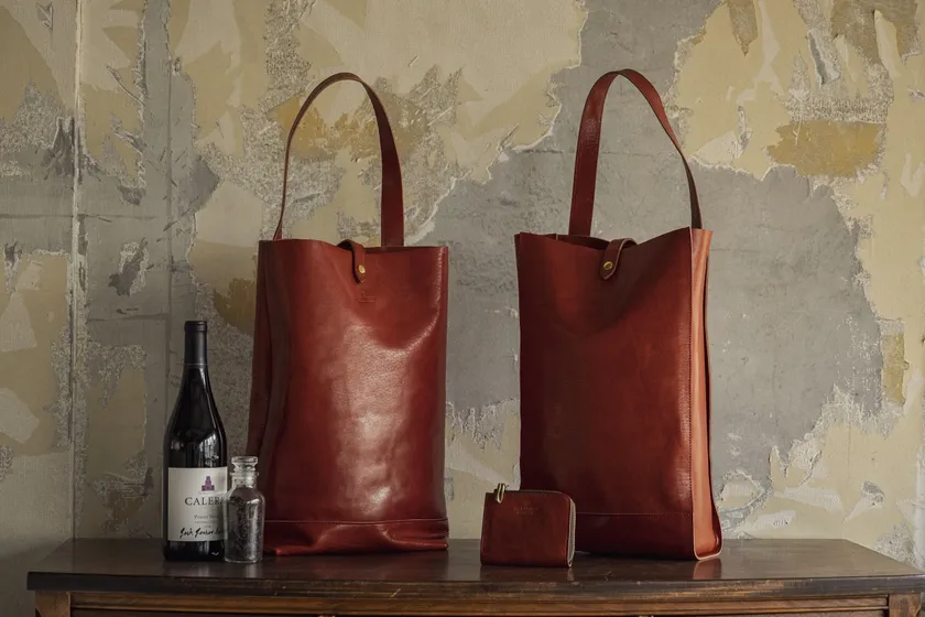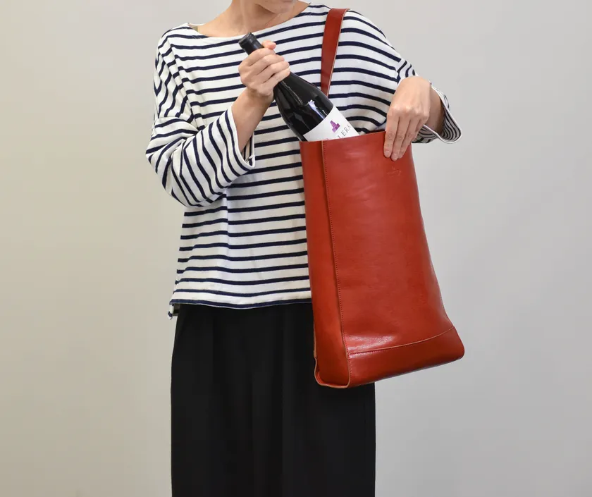 ワインポマースによる「レッザボタニカ・ビーノ」にちなんでワインポケットを装備。A4ファイルや13インチノートPCが入り日常使いできる縦長のトートバッグ。