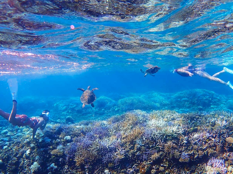 シュノーケリングセット(マスク、シュノーケル、フィン、ライフジャケット)や、パドルを漕いで水面を進むことができるSUPセット(ボード、パドル、リーシュコード)を無料で貸し出します。水中でも水面でもエメラルドグリーンに輝く海を楽しむことができます。