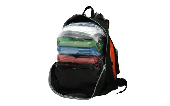 セットは1人分の水や食料、衛生用品など避難時に必要なものが揃っており、セット限定の荷物が濡れにくいジッパー付きポリ袋により袋を密閉にでき、ポーチや中身を浸水から守ります。