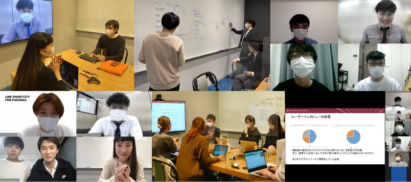 ファイナリストは、本大会発表に向けてアイデアをより革新的・具体的に磨き上げるべく、約3週間、本プロジェクト参画企業のメンターとオンラインおよび感染症対策の下オフラインにてブラッシュアップミーティングを行ってまいりました。フレームワークを活用したブレインストーミングやディスカッション、アンケートの実施、市民や企業へのヒアリングといったフィールドワーク等、ファイナリストと本プロジェクト参画企業のメンターがチーム一丸となり、本大会への準備を進めました。