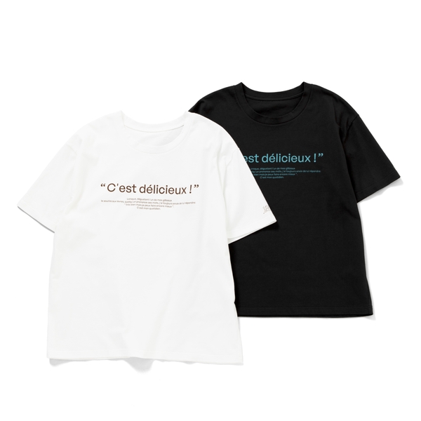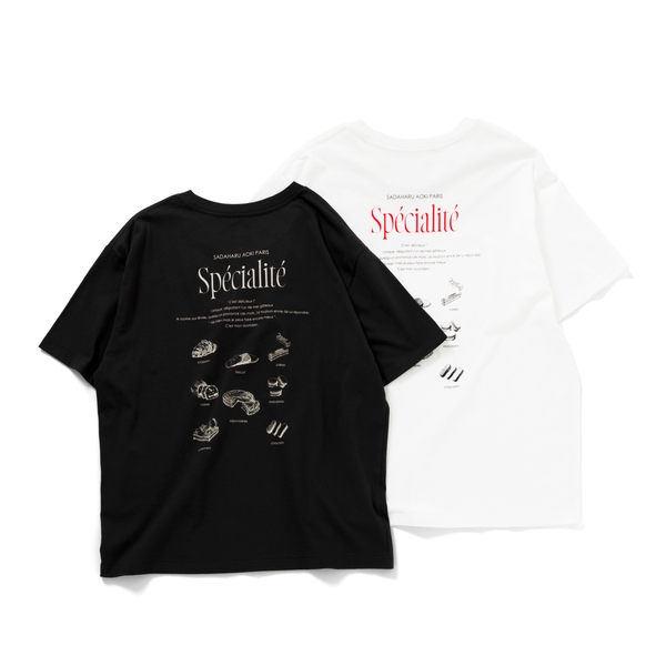 シンプルで多彩なスタイリングが楽しめるロゴプリントTシャツ。フロントには、パティシエ・青木定治氏のお菓子づくりへの想いが込められたメッセージをプリント。袖にはサダハル・アオキ・パリとSHIPSのコラボレーションを象徴するロゴをさりげなく配置しました。バックにはサダハル・アオキ・パリの代表作「ボンボンショコラ」をグラフィックで表現し、遊び心溢れるデザインに仕上げています。