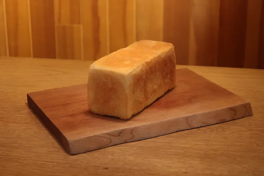 バターのほのかな甘みとふわもち感が特徴。小麦は北海道産「ゆめちから」と福岡県産「みなみの穂」を半々でブレンドした味と食感のバランスにこだわった角食パン。