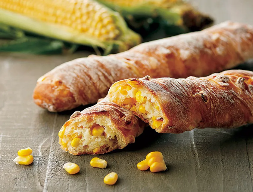 北海道産小麦を100%使用したリュスティックのもちもち多加水生地に、道産とうきびを入れて焼き上げました。小麦のうまみととうきびの甘さが口いっぱいに広がります。