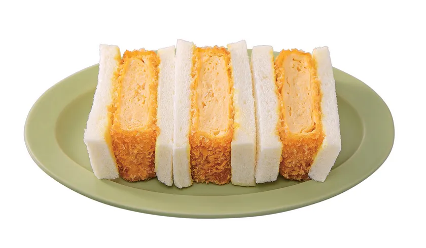 ふわふわのだし巻き玉子に衣をつけてカリっと揚げました。特製からしマヨネーズと一緒に食パンにサンド。衣のひと手間が美味しさ倍増!!