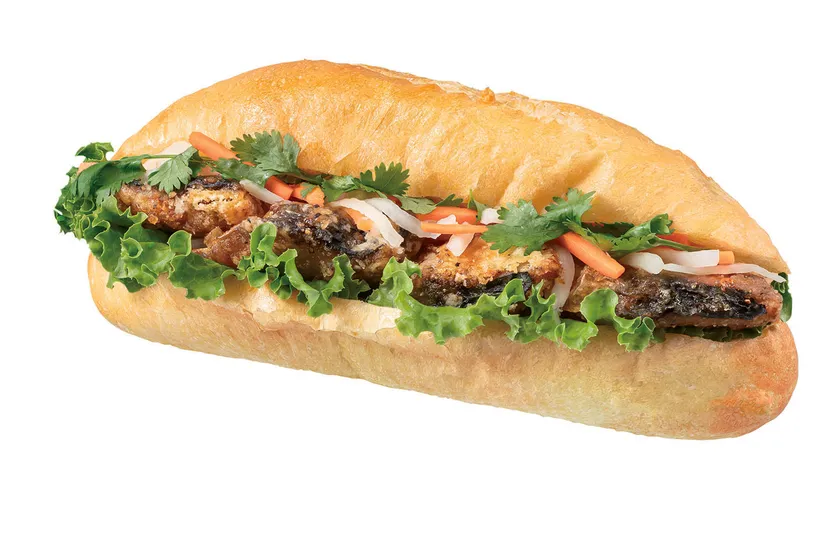 カリっとジューシーなサバの竜田揚げに甘辛ソースをからめ、なますとパクチーをぎっしりサンド。パクチーとの相性抜群。
