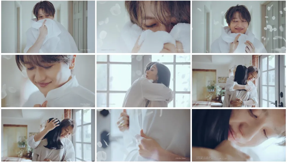 お風呂上り、Nissyさんがタオルにくるまれ柔軟剤の香りに癒されるシーンから始まります。着替えたシャツからも心地よい香りが。すると彼女が先に出かけようと声をかけます。Nissyさんは家を出ようとする彼女の手を取り、抱き寄せます。彼女の頭をポンポンすると、抱きしめながら耳元で「行ってらっしゃい」と囁くのでした。