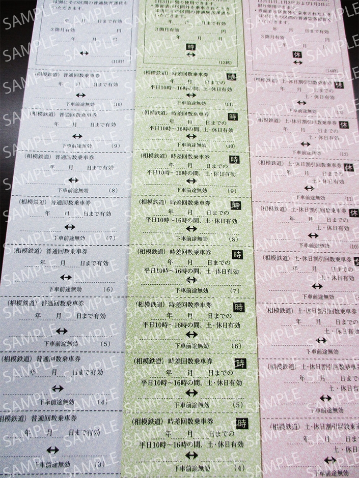 ・販売券種:普通回数乗車券、時差回数乗車券、土・休日割引回数乗車券各1冊の3冊セット