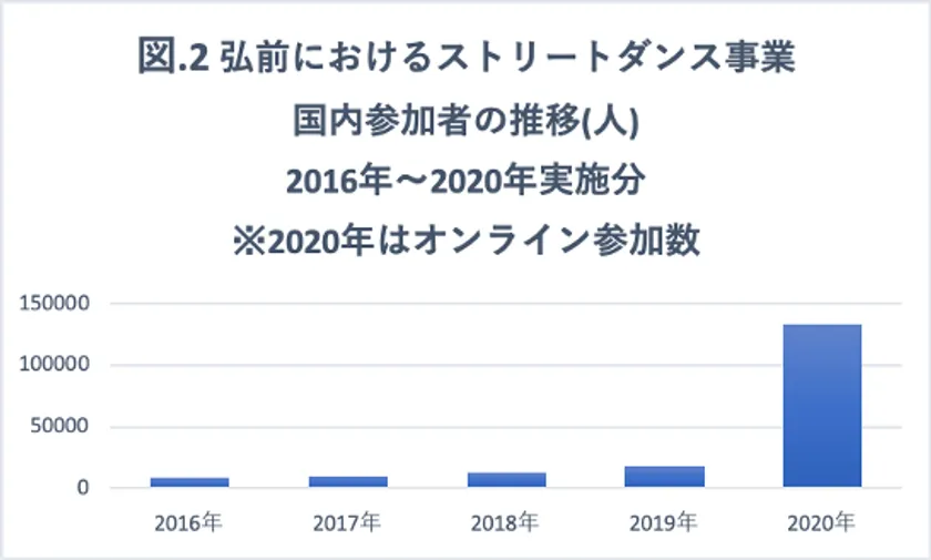 2020年は、新型コロナウイルスの影響でこれまで通りのイベント開催が難しく、全ての事業をオンラインに切り替え実施しました。その結果、SNSやYouTubeを通して海外からも多くのダンス愛好家が参加し、4月から10月までの期間で実施をしたオンラインでのダンス事業の参加者は137,500名となり、海外参加者も3,800人まで増加しました。