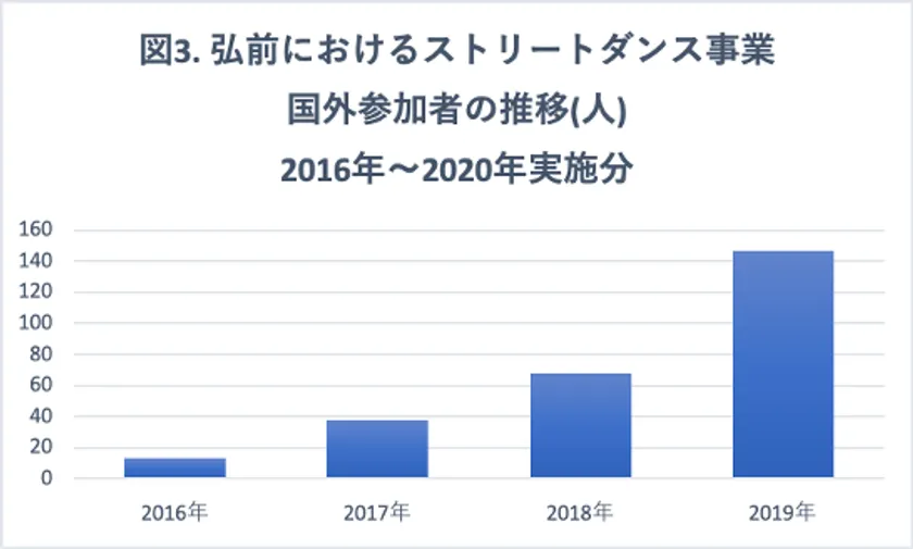 図3. ストリートダンス事業の参加者の動向について(国外)(ひろさき芸術舞踊実行委員会調べ)国外参加者