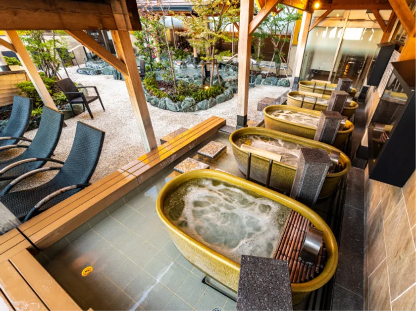 お風呂は、女性日替わり湯が『超軟水の日替わり湯』にグレードアップしました。水に含まれるカルシウムイオンなどの硬度成分を限りなくゼロに近くしつるつるとした肌触りが特徴です。さらに『美泡の壺湯』は底から大量の気泡が湧き出る事で、お肌の汚れや老廃物を取り除くマッサージ効果が期待されます。男性露天エリアには唯一潜れる『深々の湯』、無数のきめ細かい泡がお湯全体に広がる『泡々の湯』が新たに登場します。男性サウナはオートロウリュマシンがグレードアップ。これまで以上に本格的な熱気と湿気のハーモニーでサウナの醍醐味と快適さをお楽しみいただけます。