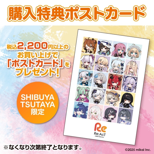 2025年8月15日(金)よりVTuber事務所『Re:AcT』のPOP UP SHOPがSHIBUYA TSUTAYA 6階IP書店で開催決定!!