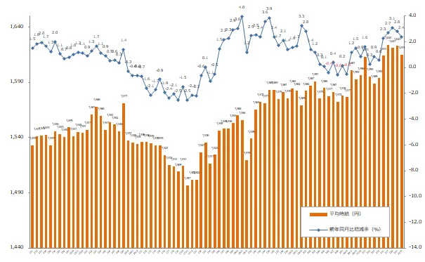 エリア別平均時給は、全エリアで前年同月比プラスを記録。具体的な時給額は、関東エリアは1,699円(前月比-8円・0.5%減、前年同月比+60円・3.6%増)、東海エリアは1,409円(同-3円・0.2%減、同+11円・0.8%増)、関西エリアは1,441円(同+1円・0.1%増、同+28円・2.0%増)でした。