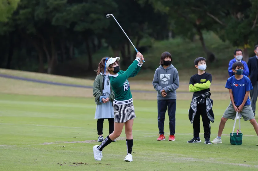 任命式当日、午後1時から小学生対象のゴルフ体験教室でゴルフを指導してもらいました。