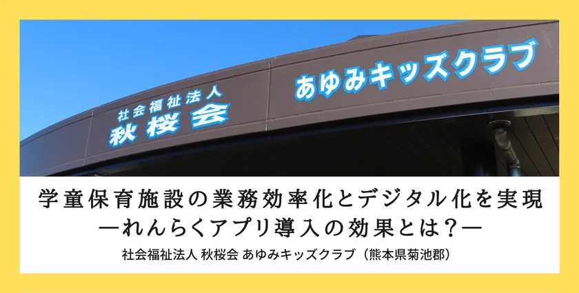 熊本県大津町の民間委託として2021月4月よりあゆみキッズクラブを開所し、欠席連絡や利用延長の申込等、保護者との連絡手段として当社の「れんらくアプリ」の導入に至りました。施設のある同町では、公立幼稚園・保育園・小中学校にて当社れんらくアプリを利用しており、保護者が同一アプリ内でそれぞれの施設へ連絡ができる点も導入の決め手の一つとなりました。