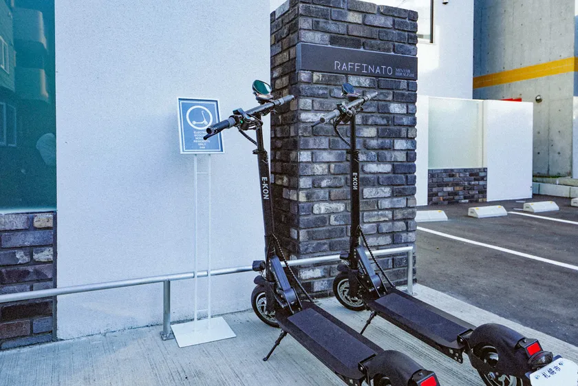 賃貸物件において、居住者専用の電動キックボードの設備としての提供は、日本初の試みです。