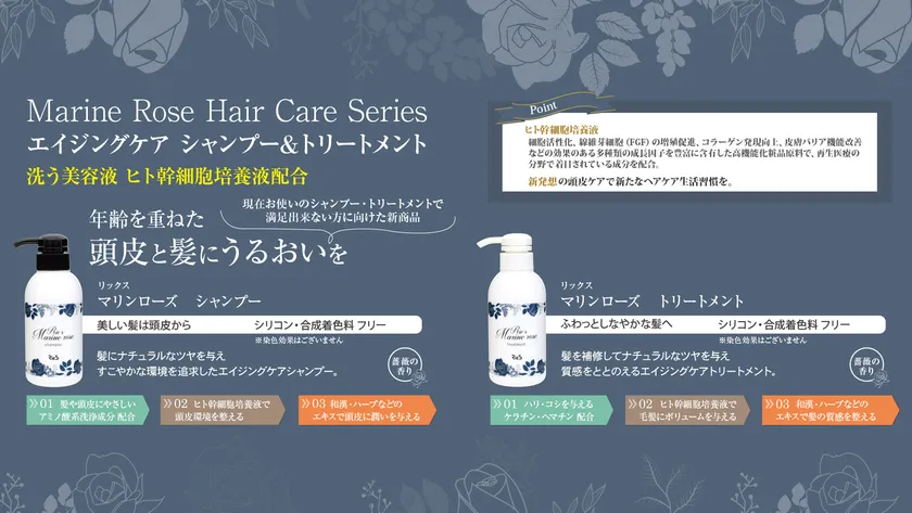 株式会社Ric’s&Co.(所在地:東京都世田谷区、代表取締役:西田 陽至)は、グレイヘア(白髪を染めずに活かすヘアスタイル)を満喫している方をサポートする「リックス マリンローズ ヘアケアシリーズ」の販促強化を12月より実施しております。