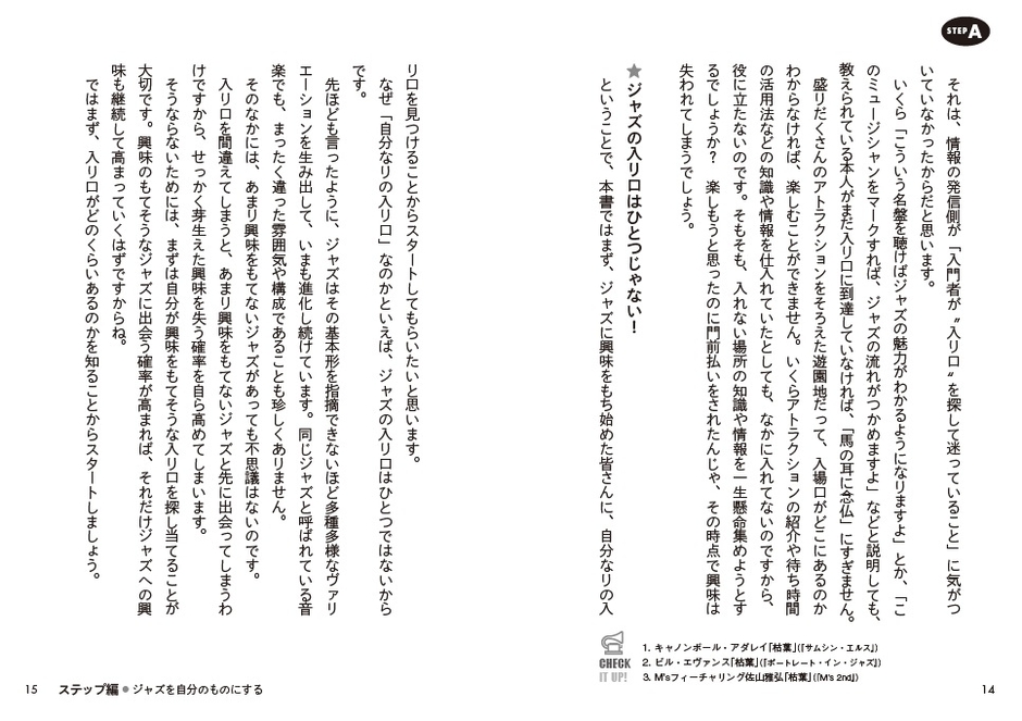 ジャズに親しむためのA~Aのステップ。「準備」→「知識」→「ライヴ・デビュー」→「自分だけのジャズ作り」へのステップアップ!