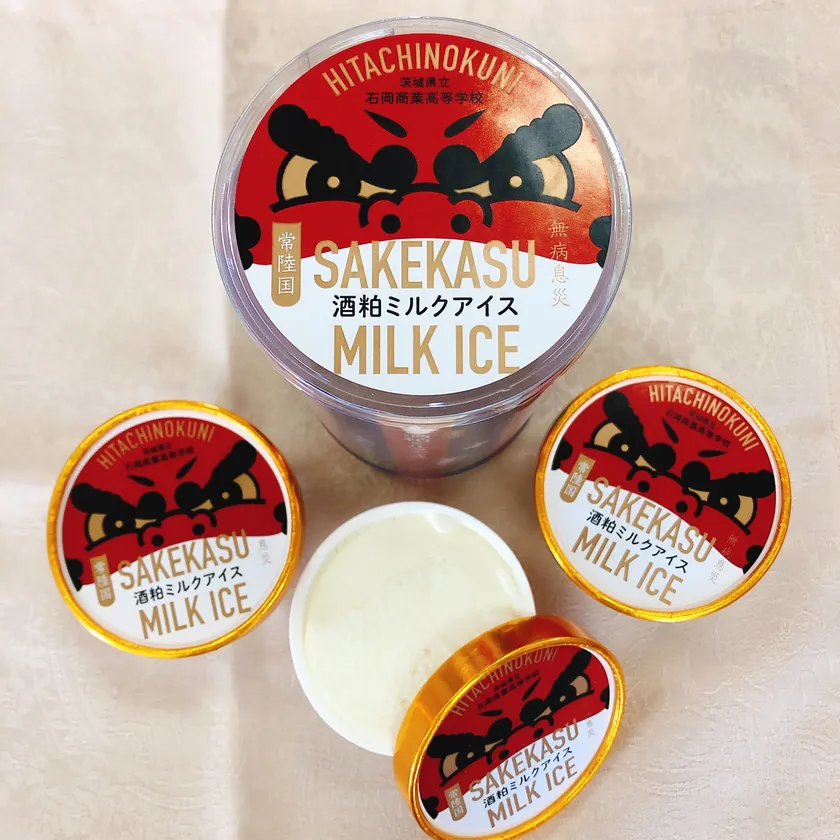 酒どころ石岡の酒粕と茨城県産生乳を使用したアイス。酒粕の風味豊かな味わいに仕上げています。パッケージは関東三大祭のひとつである「石岡のお祭り」では欠かせない獅子舞をモチーフにした逸品です。