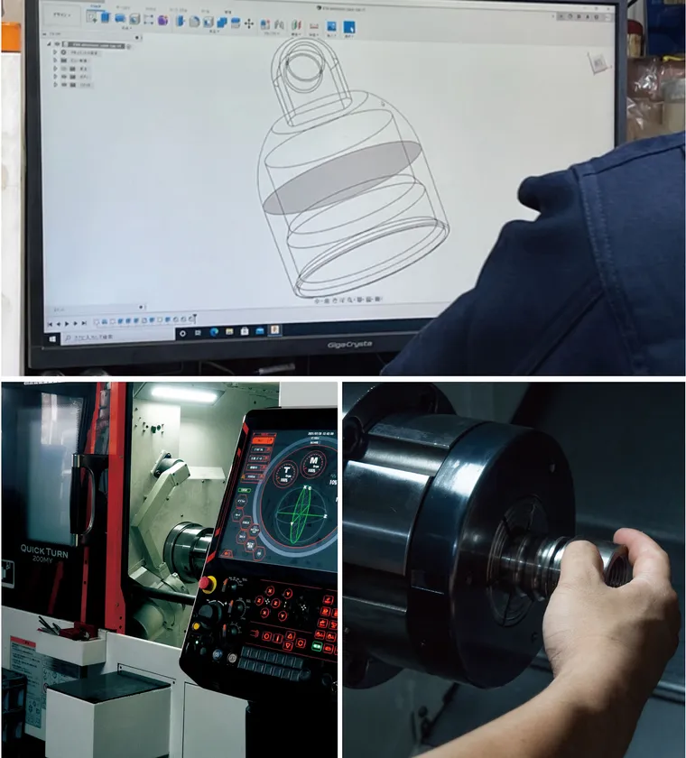 最新型の加工機による精密切削加工においても、「手込め」による加工を採用し、常に職人が状態を確認しながら切削を行っています。