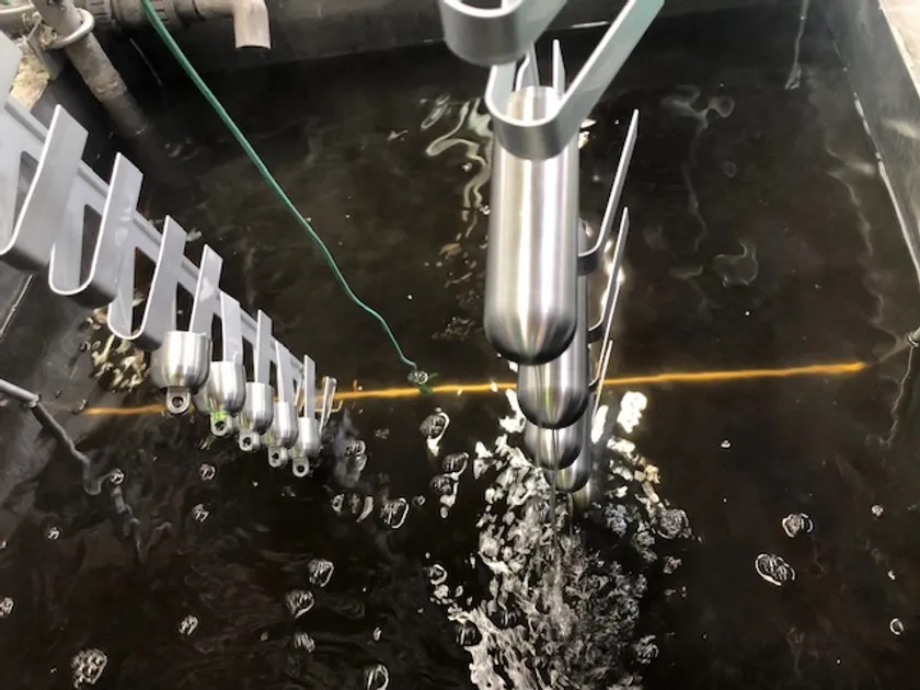 アルミニウムA5056の丸棒を使用。耐食性(腐敗への耐性)、加工性(機械加工する際の容易さ)も高く、磁場に影響されにくく、耐海水性にも優れています。