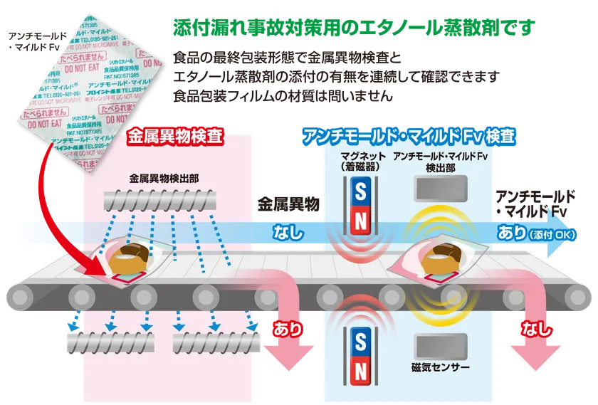 業界初!あらゆる包装形態において 食品品質保持剤の封入の有無を検査可能な新製品 「アンチモールド・マイルドFv」を開発・販売