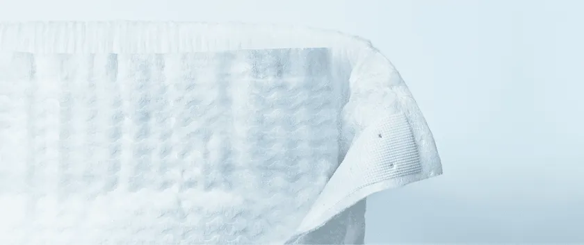 絹のようになめらかな超極細繊維を採用し、でこぼこ立体加工に。肌に触れる部分はいつもやわらか、さらさらで、こすれ、かぶれを防ぎます。また、おむつ替えをするママ・パパのためにも、さわり心地のいい全面なめらかシルキー素材を採用しています。