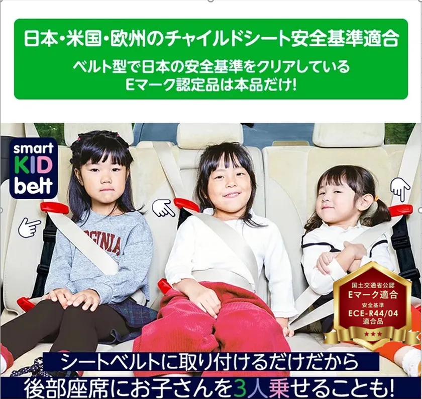 現在日本では、6歳まではチャイルドシートの使用を義務づけられており、10歳頃まではジュニアシートの使用が推奨されている。しかし、チャイルドシートやジュニアシートの利用には「置くのにスペースを取る」「車内の窮屈感」「子どもが嫌がる」「持ち運びが大変」など不便な面が多くあった。それらの問題を一気に解決したのが、ベルト1本を装着するだけで、子どもが安全に乗車できる「スマートキッズベルト」だ。