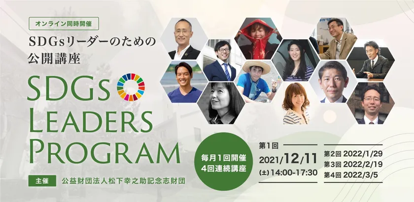 公開講座「松下政経塾 Leaders College」第1弾となる「SDGs Leadersプログラム(第1期)」は、12月11日から開講します。国をはじめとする行政、企業、地域など、あらゆるステージで「SDGs(持続可能な開発目標)」の達成に向けて果敢に取り組むSDGsリーダーが求められています。