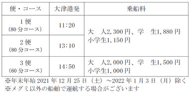 琵琶湖汽船株式会社(本社:滋賀県大津市浜大津、社長:川添 智史)では、2021年12月6日(月)より冬期ダイヤにて運航を開始いたします。