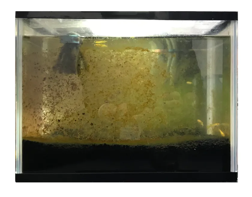 図1.珪藻が出現した室内飼育容器