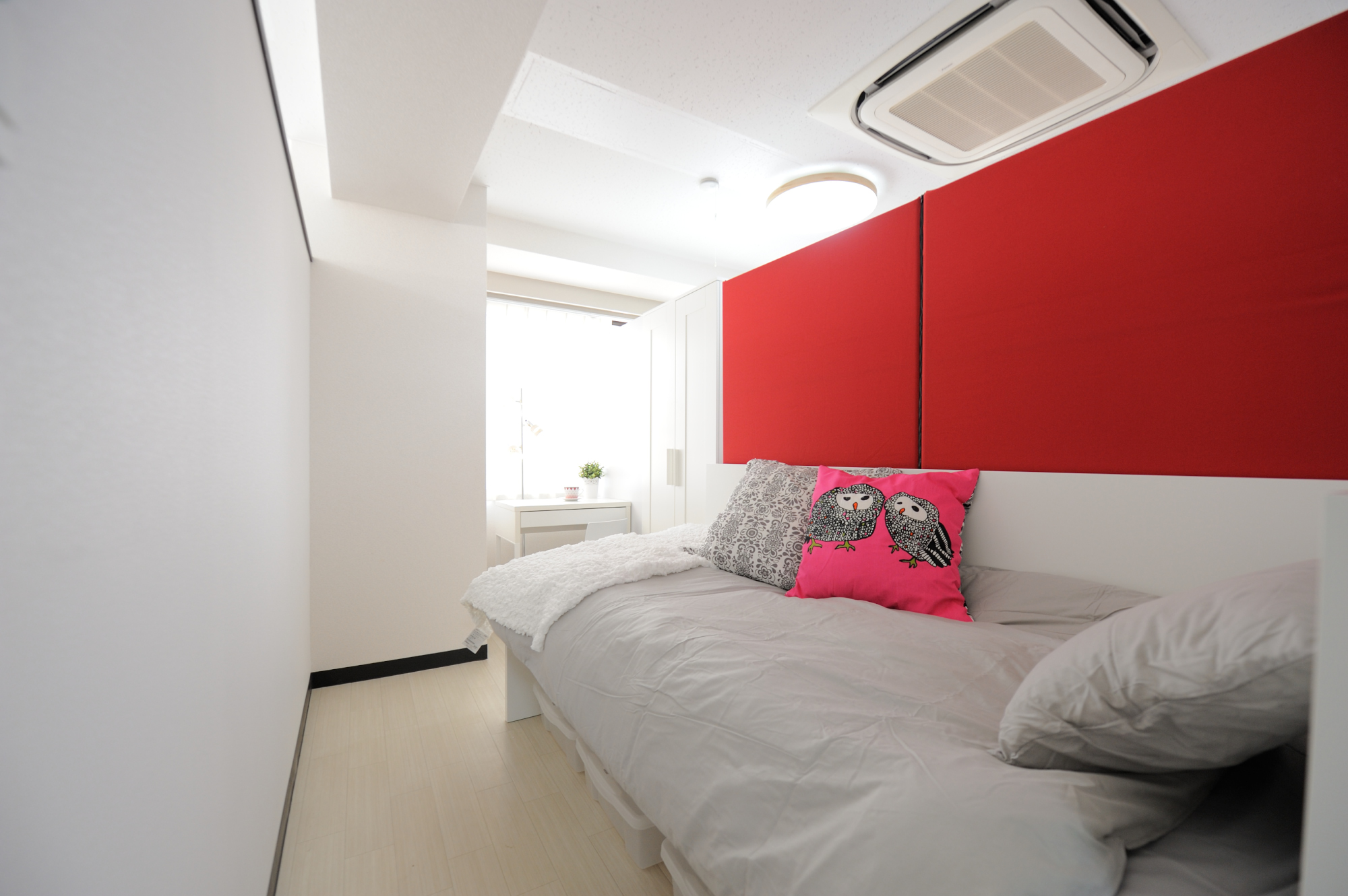 特徴 :シェアハウスの個室で、共有リビングがあります。リビングには、