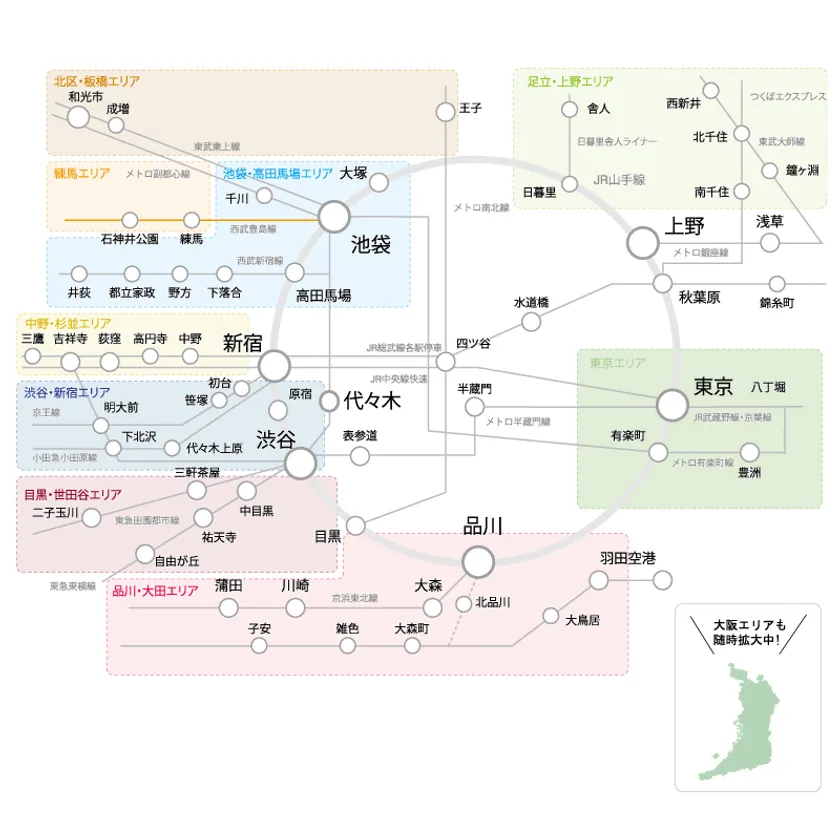 「クロスハウス」サービスは、都内を移動ができるだけでなく、家賃3万円から東京に住める若者に優しい物件を提供しています。また、価格も家賃と光熱費がサブスクリプション(定額)のため、安心して利用が可能です。サービスエリアは東京だけでなく、神奈川県、埼玉県にもエリアを拡大しております。