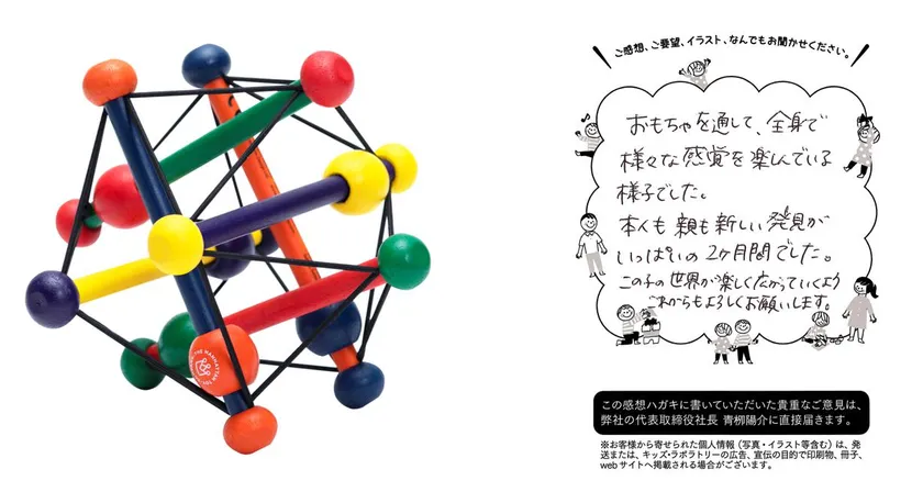 本リリースは、クリスマスや誕生日プレゼント・出産祝いを贈る際の参考データとして。また、知育玩具を開発・販売するメーカー様にとってより良い製品開発をいただくための参考データとしてお役立ていただきたく思っております。キッズ・ラボラトリーは今後とも、知育玩具の市場活性に貢献可能な有益なデータを積極的に開示し、元気溢れる子供たちが健やかに成長できる社会の実現に貢献できるよう、務めて参ります。