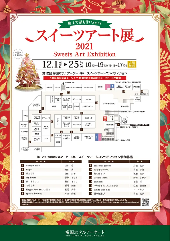 地上で最も甘いXmas『スイーツアート展2021』 お菓子の芸術作品が集うスイーツアートコンペ、 帝国ホテルアーケードにて12月1日~25日入場無料開催!