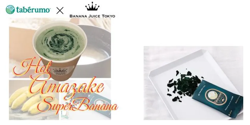 株式会社タベルモ(本社:東京都千代田区/以下、タベルモ)は、大人気バナナジュース専門店「BANANA JUICE TOKYO」とのコラボレーションにより、生スピルリナ「タベルモ」入りホットメニュー『甘酒スーパーバナナ』を11月29日より「BANANA JUICE TOKYO」にて発売いたします。