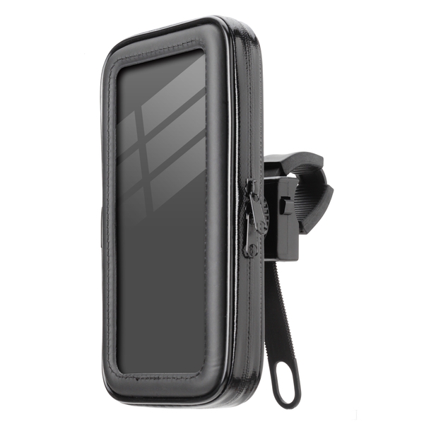 防滴・防塵設計で急な雨でも安心な自転車用 スマートフォンホルダー(ポーチタイプ)です。収納も簡単なポーチタイプで、水滴や埃からスマートフォンを守り、タッチ操作も可能です。また、取り外しできるステーを採用し、ポーチに入れたまま持ち歩き可能です。360°回転する為、シーンに応じて最適な角度に調整が出来ます。ハンドル部へ固定はフレキシブルステーで簡単に取り付け・取り外しが可能です。※対応ハンドル径:20~40mm