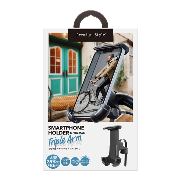 「PG-BYHLD02SAN」は、トリプルアームでスマートフォンをしっかり固定する自転車用 スマートフォンホルダー(アームタイプ)です。ロック機能が付いた伸縮するアームがスマートフォンをしっかりホールドします。また、取り外しできる可動式ステー採用で、スマートフォンをホルダーごと取り外しが可能です。360°回転する為、シーンに応じて最適な角度に調整が出来ます。ハンドル部へ固定はフレキシブルネジ式ステーで簡単に取り付け・取り外しが可能です。※対応スマートフォンサイズ:横幅55~85mm×高さ130~165mm×厚み7~13mm。※対応ハンドル径:19~40mm