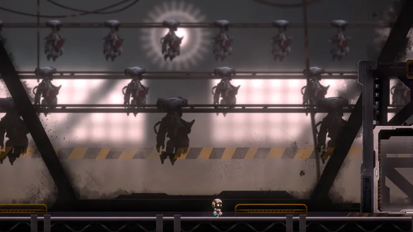 この荒れ果てた静かな惑星には、多くの秘密が隠されています。同時に、そういった魅力には危険がつきものです。背景の美しいイラストは、この惑星の荒廃とモノボットの孤独を表現しています。ずらりと並んだロボット部屋、満天の星空、巨大な歯車が動いているさま、オレンジ色に染まった夕日などがそれにあたります。シーンごとに異なる魅力があり、ストーリーを進めていくと、背景のイラストを通して何度もこの惑星の印象が変わっていくでしょう。ただし、背景を楽しむのは良いですが、敵に一掃されないようにご注意を。