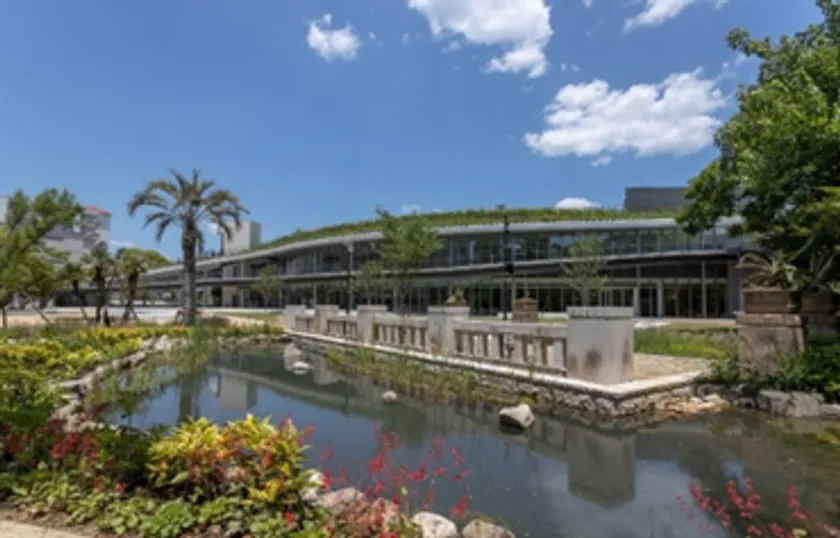 かつて多くの人に愛された宝塚ファミリーランド、宝塚ガーデンフィールズの美しいガーデンが存在した地に誕生し、今もその一部が残る宝塚市立文化芸術センター。
