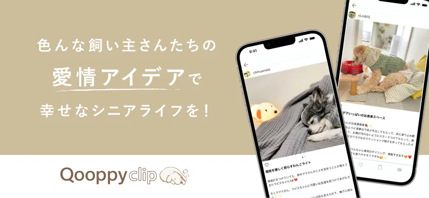 高齢になった愛犬にぴったりのアイデアが見つかるアプリ 「Qooppyclip」が誕生!