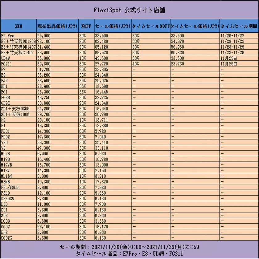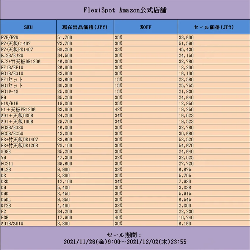 ・内容 : FLEXISPOT公式サイトの対象店舗にて、