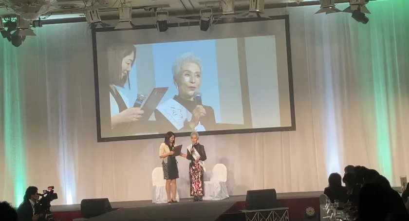 会場審査で人気を二分したのはオーラ・パフォーマー部門88歳の橋長 弘子さん(オーラパフォーマー部門準グランプリ)でした。