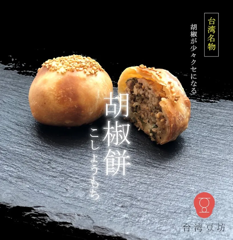 焼き立てのサクサクの生地の中には、黒胡椒の効いたピリ辛の豚肉と韮がたっぷり絡まった餡。その上にネギを沢山のせてこんがりジューシーに焼いた焼き肉まんのようなソウルフード。本場台湾では、地元の方にも観光に来られた方にも大人気の台湾を代表するローカルグルメの一品です。