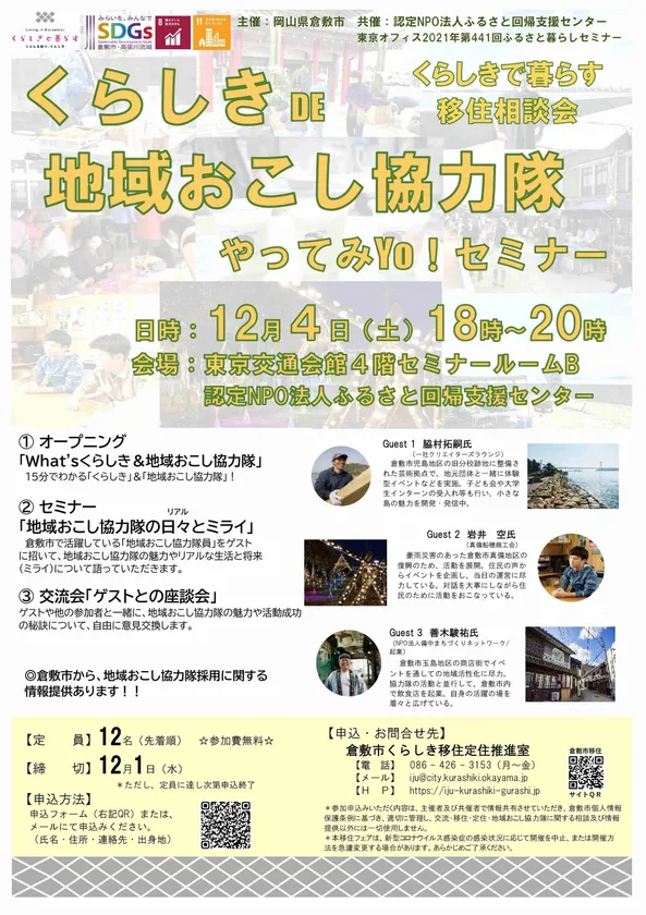 地域おこし協力隊セミナー「くらしきで暮らす移住相談会」 2021年12月4日に東京交通会館4階セミナールームにて開催