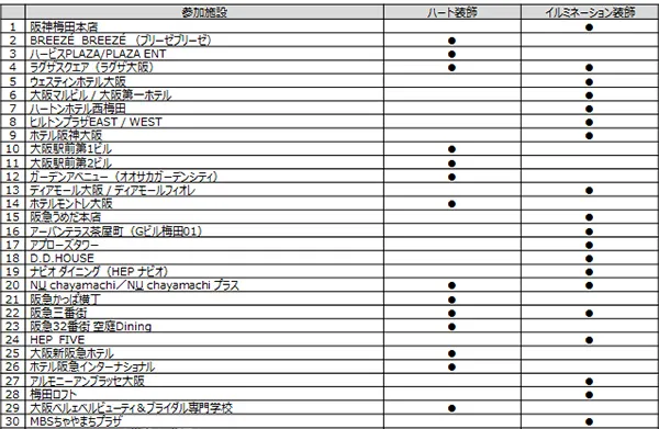 梅田地区の各施設(商業施設・ホテル等)にハート装飾やイルミネーション装飾を設置し、エリア一体となって心あたたまるスポットを創出します。各スポットはまち歩きの楽しさの一つとして公式Webサイト上でご紹介します。