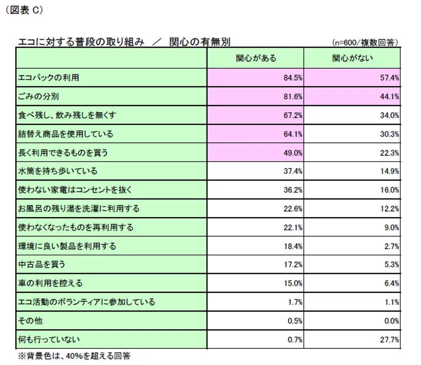 図C エコに対する普段の取組み/関心の有無別