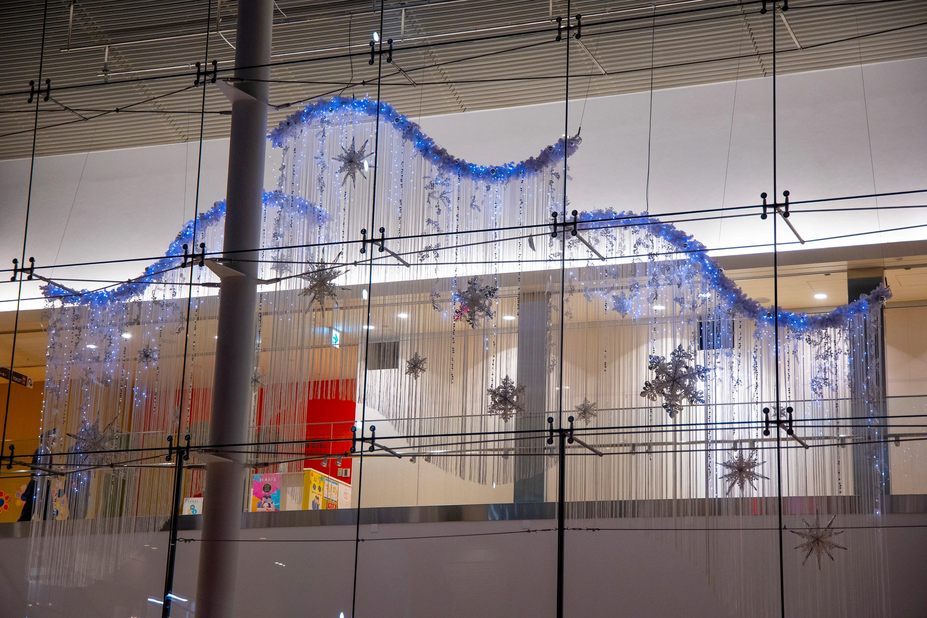 また、約5万2千の電球と雪の結晶やユーカリ・もみの木・ヒイラギ・ジュニファーベリーをモチーフとした一つ一つ完成度の高いオーナメントで華やかさも演出しながら、白を基調とした素敵なイルミネーションとなっております。