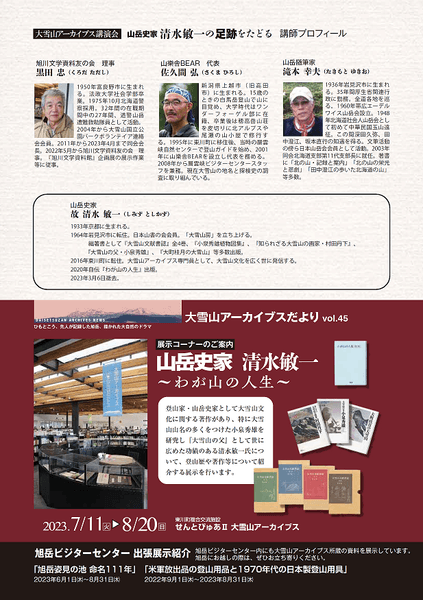 【北海道東川町】大雪山の文化を伝える資料群「大雪山アーカイブス」の立役者、山岳史家・清水敏一氏の追悼講演会を開催